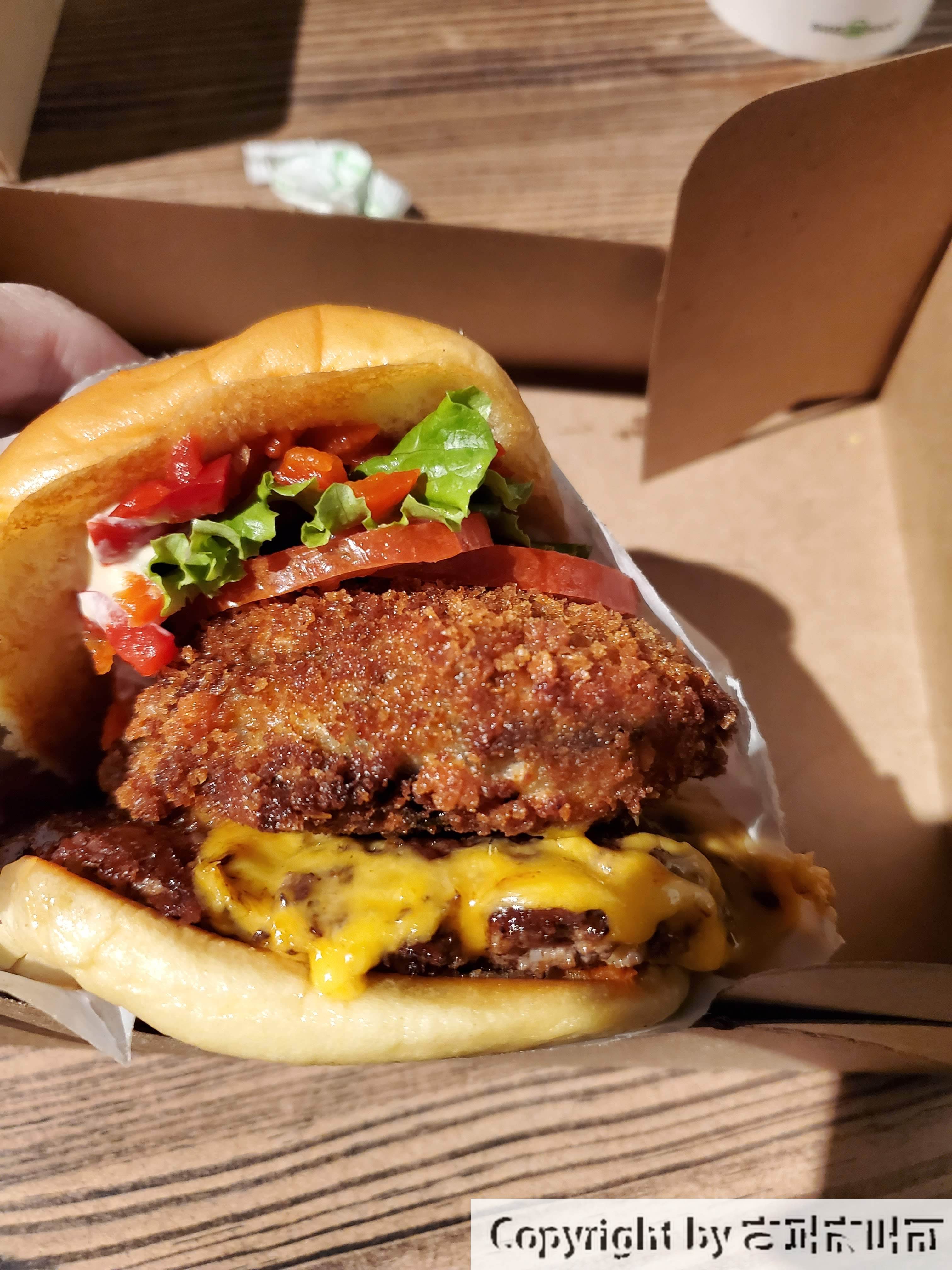 쉑 스택은 소고기패티랑 버섯으로만든 패티를 한장씩 올려주는 메뉴에요.